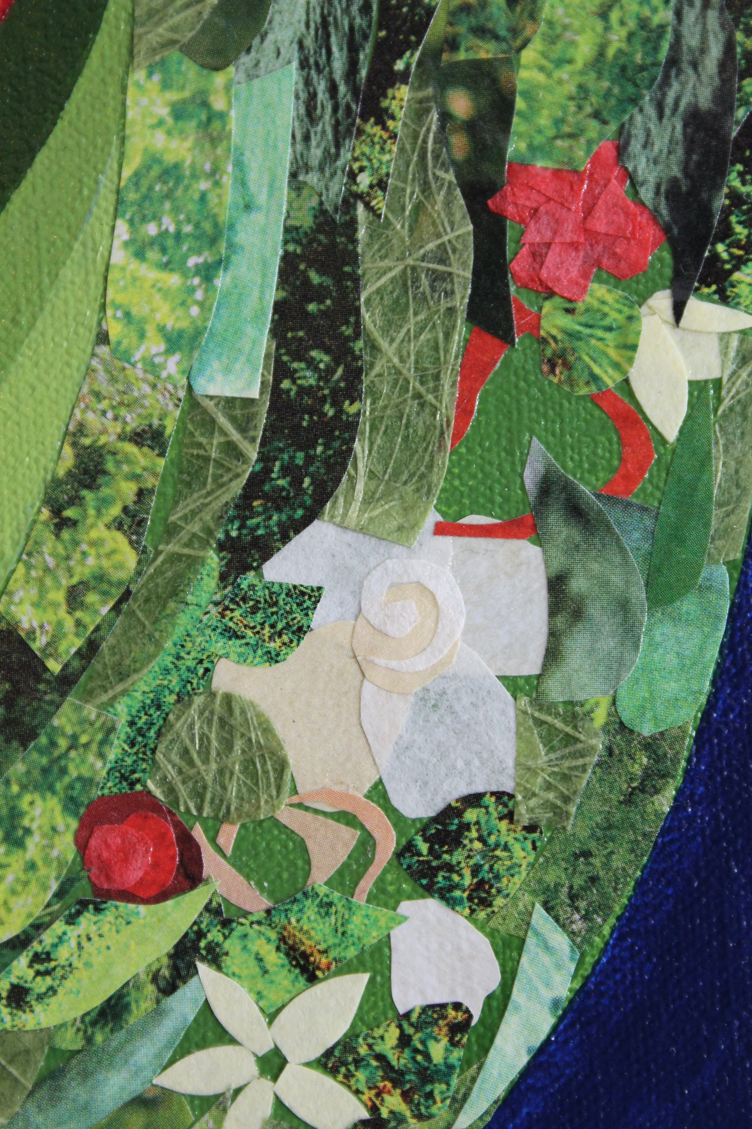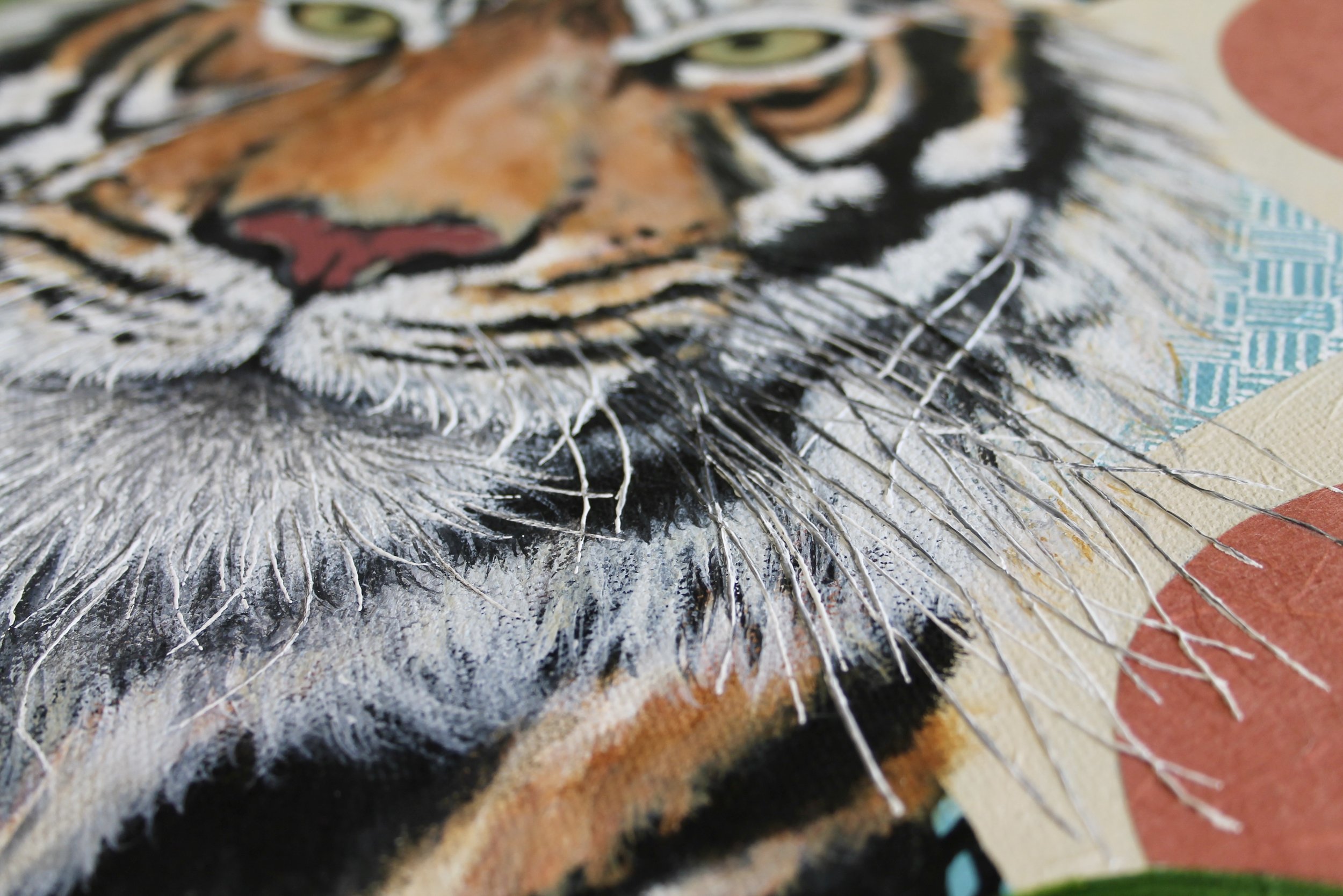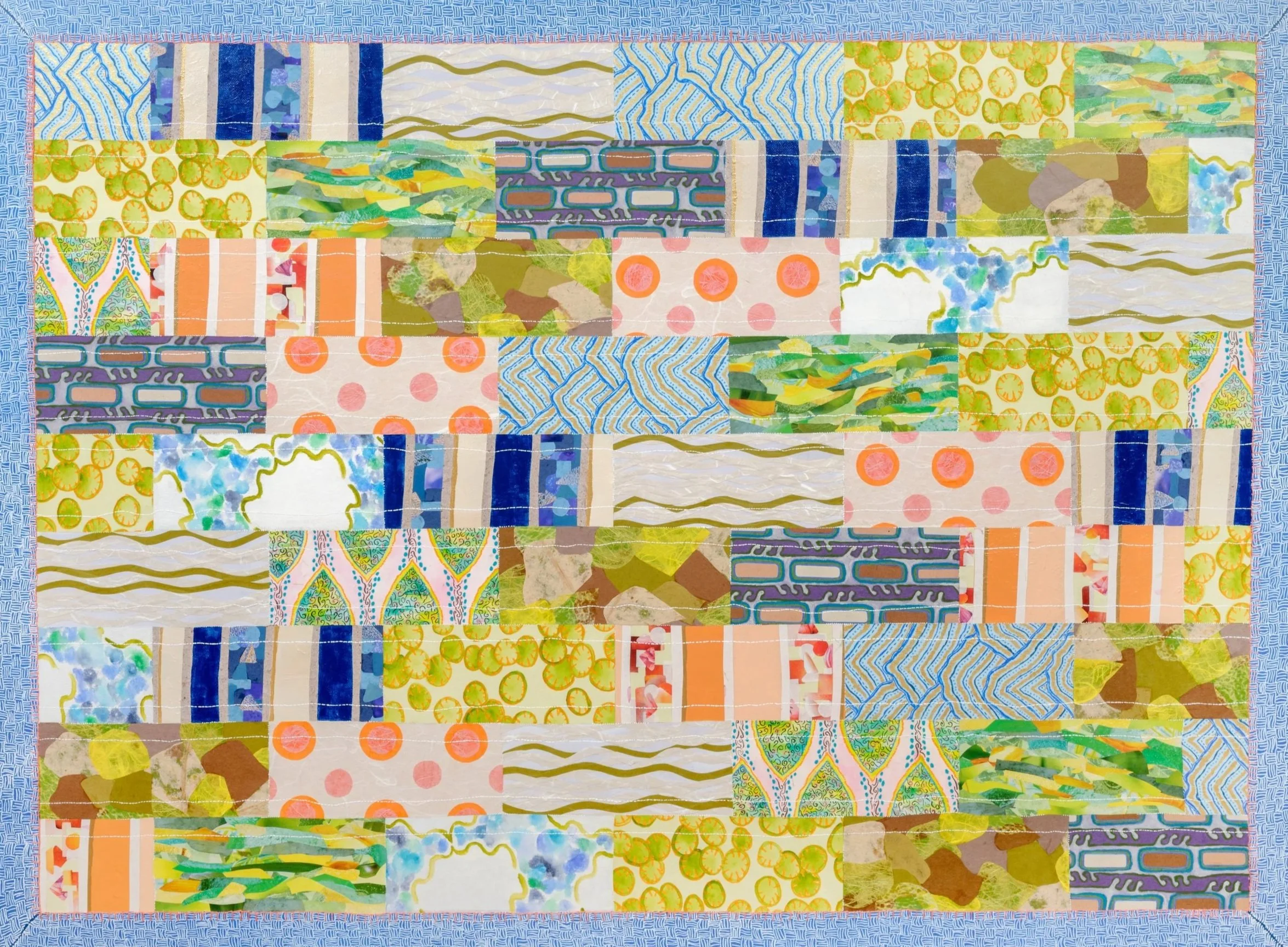 2024, 30x40" — paper collage, acrylic, embroidery floss, and watercolor